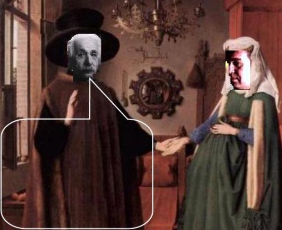 You see my dear. In the old days people thought that the Holy Spirit caused these things. Fortunately, we’ve moved beyond superstition. We now know that the increase in mass you are experiencing is caused by indulging in a very fast life. |