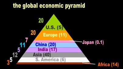 % Population vs. % Global GDP The US, Europe, and Japan generate almost half of the world's income. These closely interrelated economies would collapse if any of the other two collapses. If they collapse, the Asian, S. American and African economies become irrelevant. |