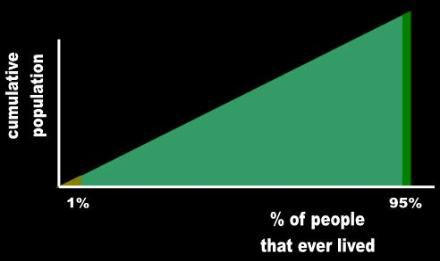 percentage of all the people that will ever live. It is more probable that you are among the last humans on Earth