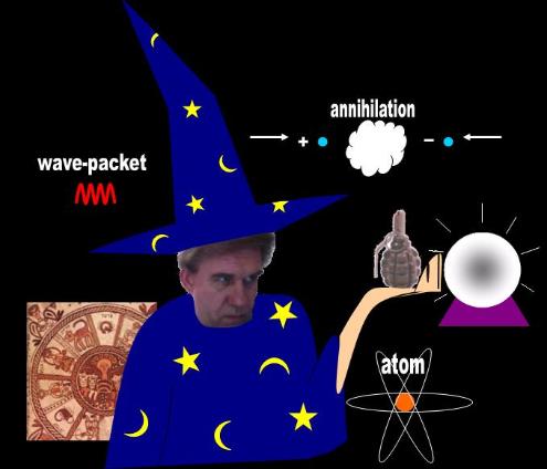 | There's that lousy trio from the sixties singing 'That Old Black Quantum Magic' and 'Puff the Magic Virtual Photon' again. I can't stand them. I think it's time for me to save humanity the agony and do a little bit of real magic! |