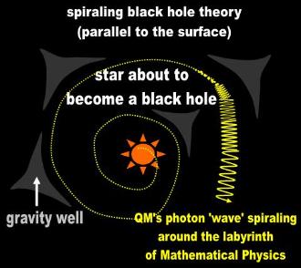 | In the Harvard Tower scenario (Figs. 11 and 12), relativists make no mention of warped space, nor do they claim that light changed direction. They explain that gravity caused a change in frequency, insinuating that a photon or wave- packet travels rectilinearly and the wave is compressed as it approaches the center of the Earth. However, when explaining the formation of a black hole, relativists change their tune. Now it is the gravity well which prevents light from escaping. The photon is trapped in a circular orbit and can’t get out. These two physical interpretations of relativity are irreconcilable. (The same argument explained in more detail.) |