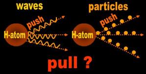 | The wave and the photon hypotheses have light traveling radially outwards from an object. The quantum graviton also travels away from an object. How can something that travels outwards also attract inwards. How do we reconcile light (push) with gravity (pull)? Is there a GUT? |