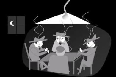 | The Scene: A dark, humid basement at the Physics Department in California Institute of Technology (CalTech). Four of the world's foremost relativists – Alan Guth (a.k.a. Li'l Al), Stephen Hawking (a.k.a. Baby Face), Roger Penrose (a.k.a. Butch), and Kip Thorne (a.k.a. Bugsy) – are planning a heist at the local First National Bank. |