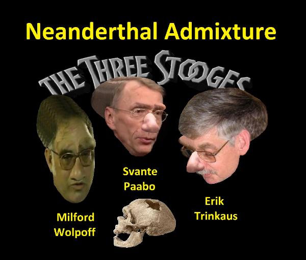 Well, I'll take that back. Some people perhaps do in fact descend from Neanderthals. They have the typical thick brows, archaic thinking, and especially the flat heads. If the two species met here and there, the least thing on their minds would have been sex. This Hollywood fantasy of a Neanderthal male kidnapping a Cro-Magnon woman and producing a viable hybrid after 400,000 years of divergence is more amusing than it is ridiculous. It shows no imagination whatsoever. Just appalling ignorance! People like Trinkaus, Paabo, and Wolpoff should make it a point to 'read' less Playboy and more Biology. |