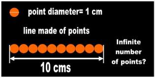 The mathematicians routinely boast that they can fit an ‘infinite’ number of dots in a line segment (i.e., a finite line). The rational mind instantly protests. If I have a 10 cm line and each dot is 1 cm in diameter, we can mathema- tically fit only ten dots. We don't need to go to college to realize this.