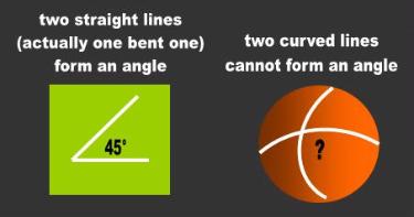 Can we form an angle with curves? Euclid defined an angle using straight lines. The mathematicians got around the requirement by placing straight lines on curved lines. The resulting 'angle' has the magnitude formed by the vertex of the straight lines. In this indirect manner, the mathematicians were able to extend the concept of angles to curved lines. They subsequently invented the curved 'tri' 'angle'!