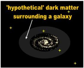 | The Theory of General Relativity has already been falsified by several observations. One of these is that stars at the outer edge of a galaxy orbit about as fast as those near the center. This phenomenon cannot be described or modeled with relativity’s field equations. Rather than discard GR as required by the scientific method, the mathematicians postulated yet another ad hoc (and conveniently unverifiable) variable they call ‘dark matter’, a ‘mass’ -- a concept -- that makes the equations come out right. This miraculous ‘substance’ is self-servingly transparent (because it does not mask stars in the background) and very heavy for no reason other than to prevent anyone from falsifying relativity in the short run. It is also for this reason that dark matter is |