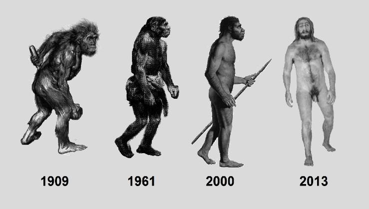 In 1909, the French paleontologist Boule hired an artist to sketch a likeness of a typical Neanderthal. Since then Neanderthal has undergone a radical change, becoming ever more human, ever more white, and ever less hairy. The 2013 BBC documentary 'Prehistoric Autopsy made Neanderthal into a clean-cut, blond Hollywood movie star. Incapable of explaining the extinction of the Neanderthals, admixture theorists have stealthily placed in the eyes and minds of the masses the amusing idea that their forefathers looked pretty much like us. The theory that is gaining the upper hand is that the Neanderthals disappeared when they intermarried with humans. If the admixture folk have their way, you will soon end up believing that the ape on the left was your great grandfather. |